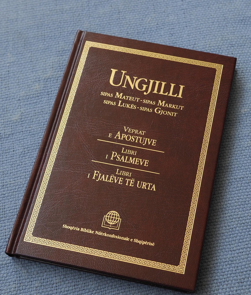 Utvalda bibelböcker på albanska: Evangelierna, Apostlagärningarna, Psaltaren och Ordspråksboken.